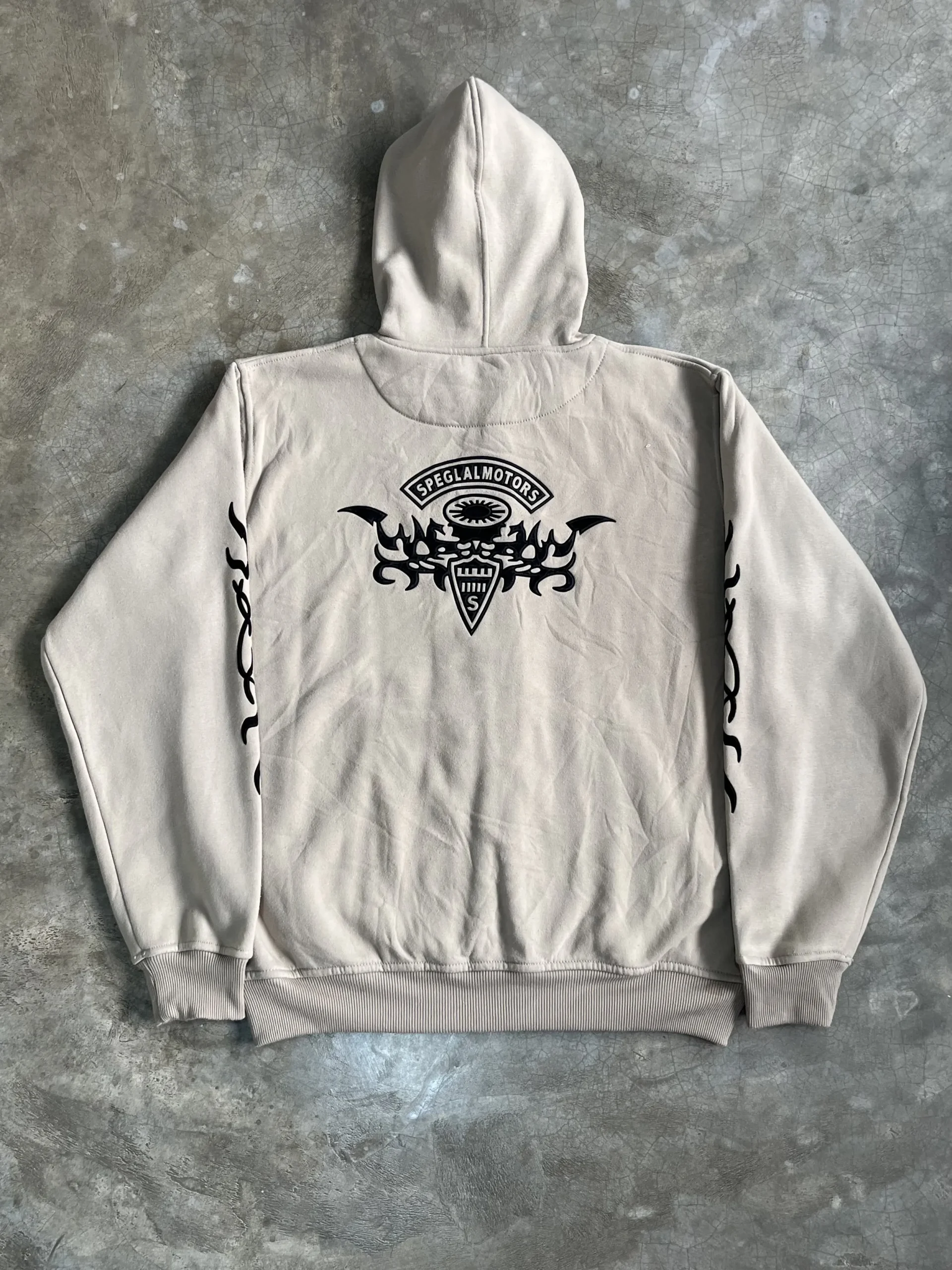 Beige printed hoodie Size – L Chest – 44 Length- 27 Shoulder -20 Condition 10/10