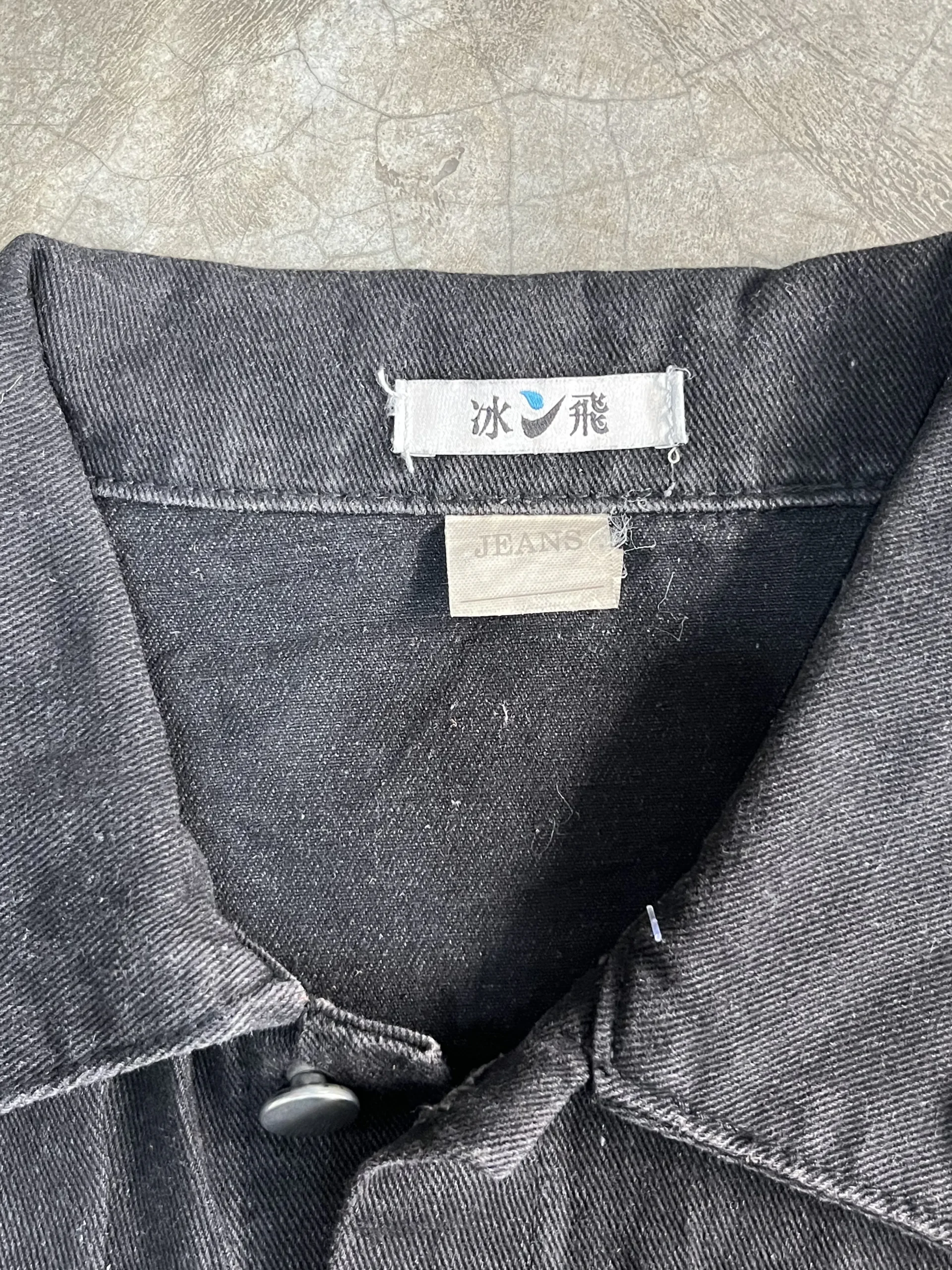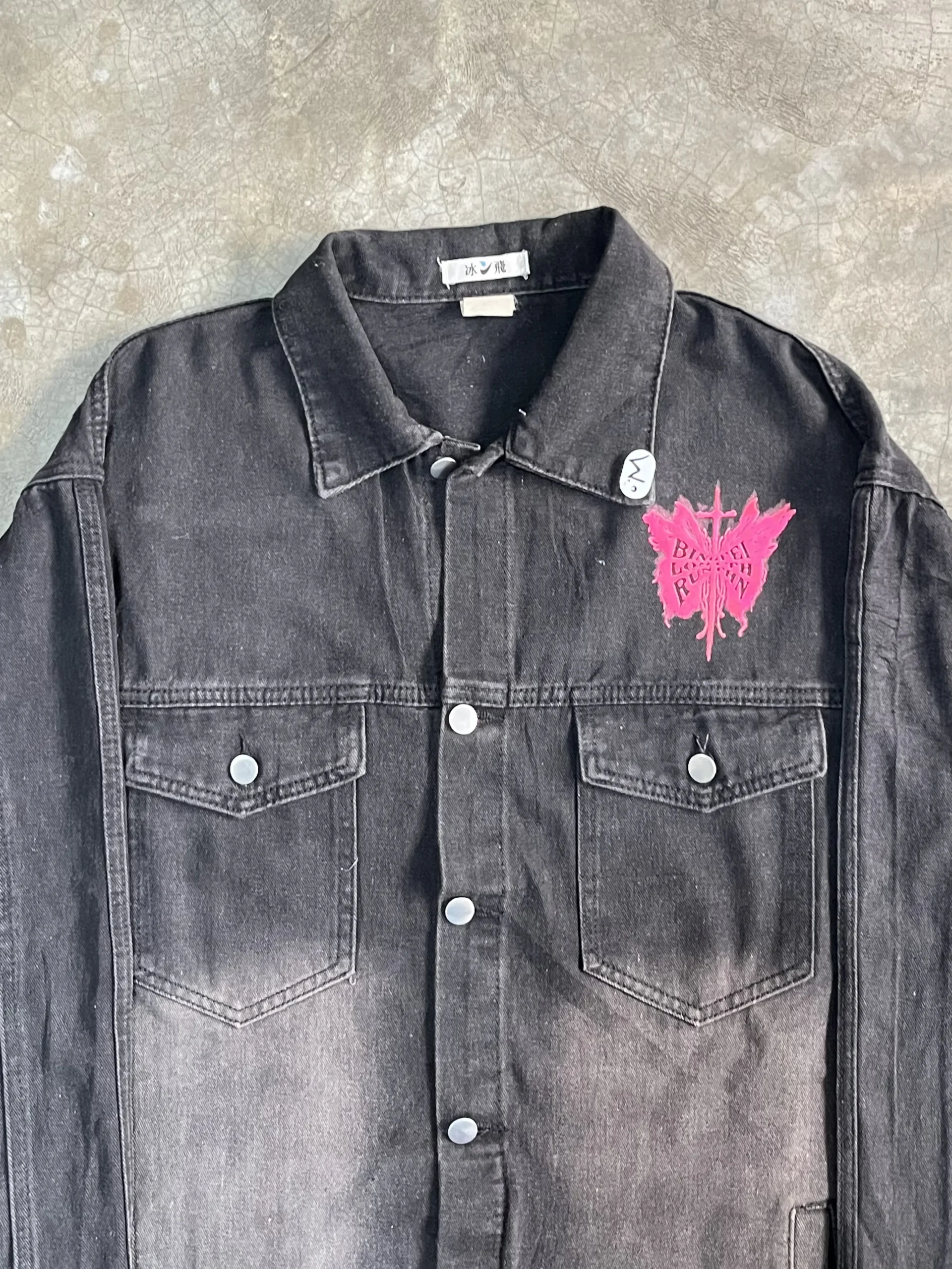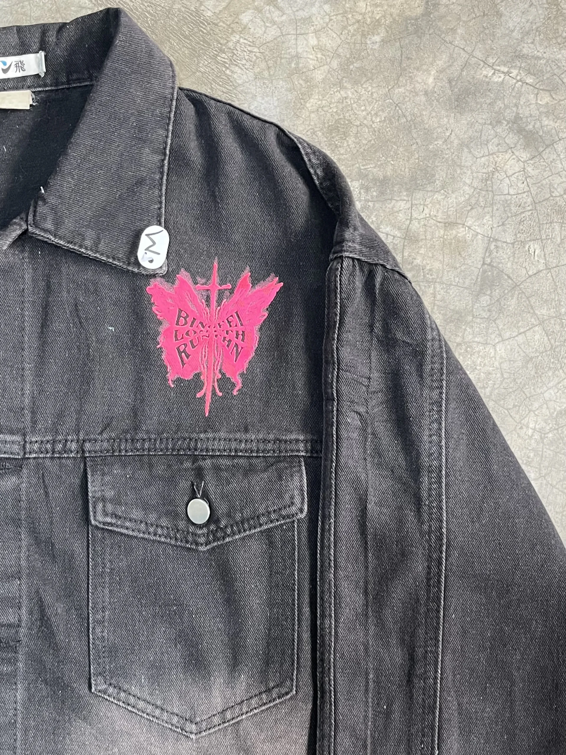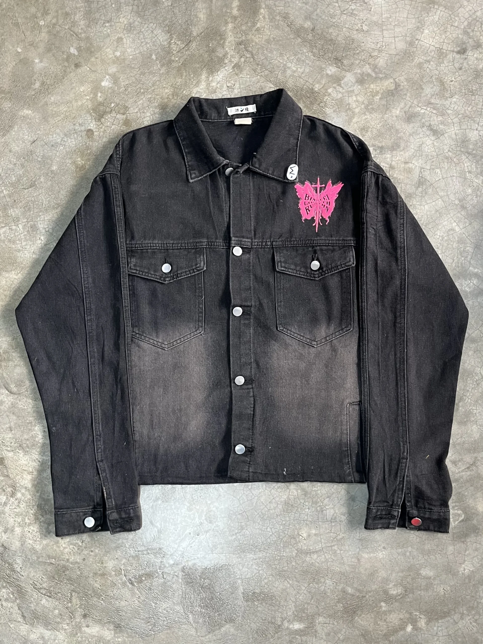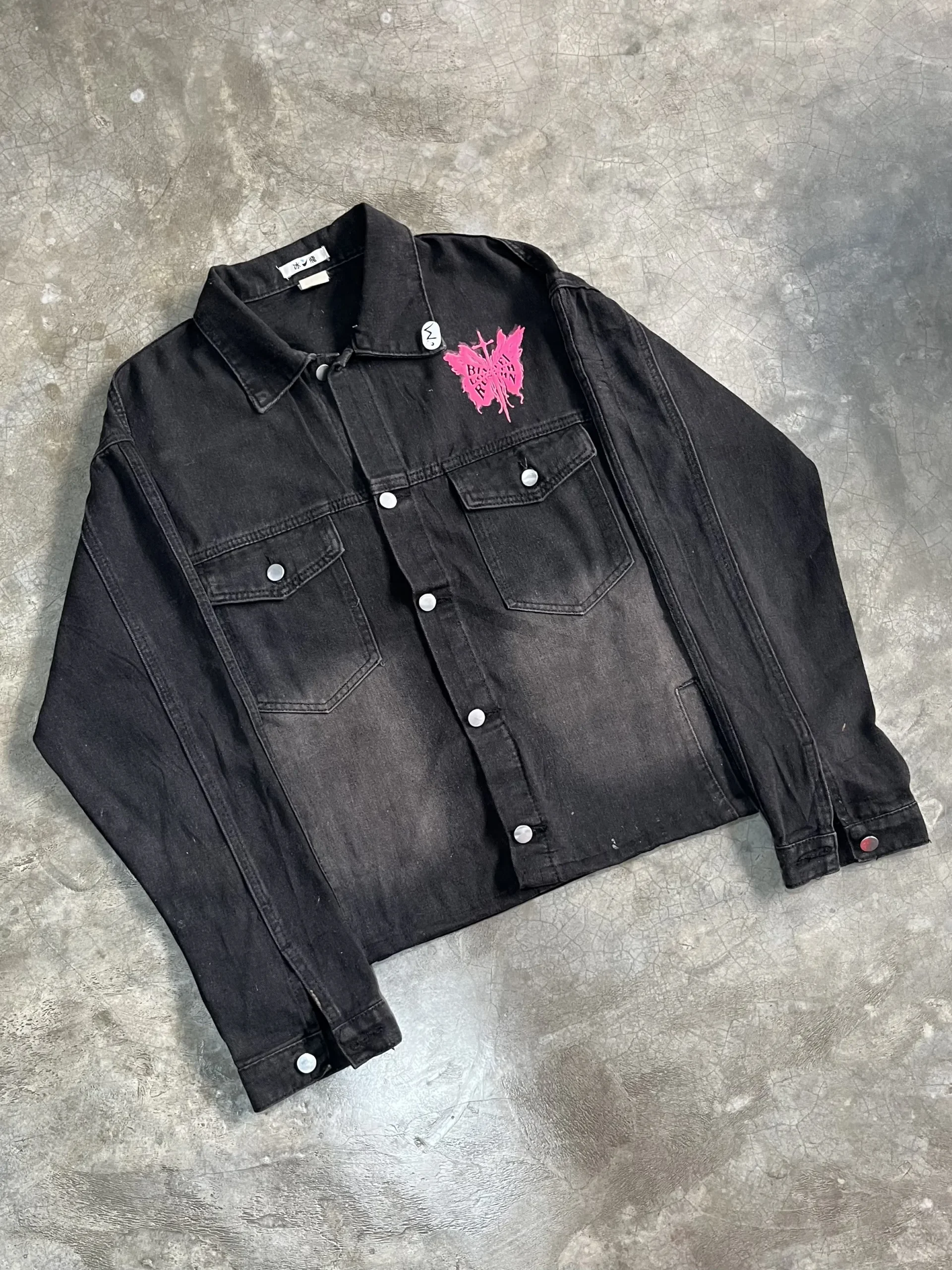 Black puff printed denim jacket